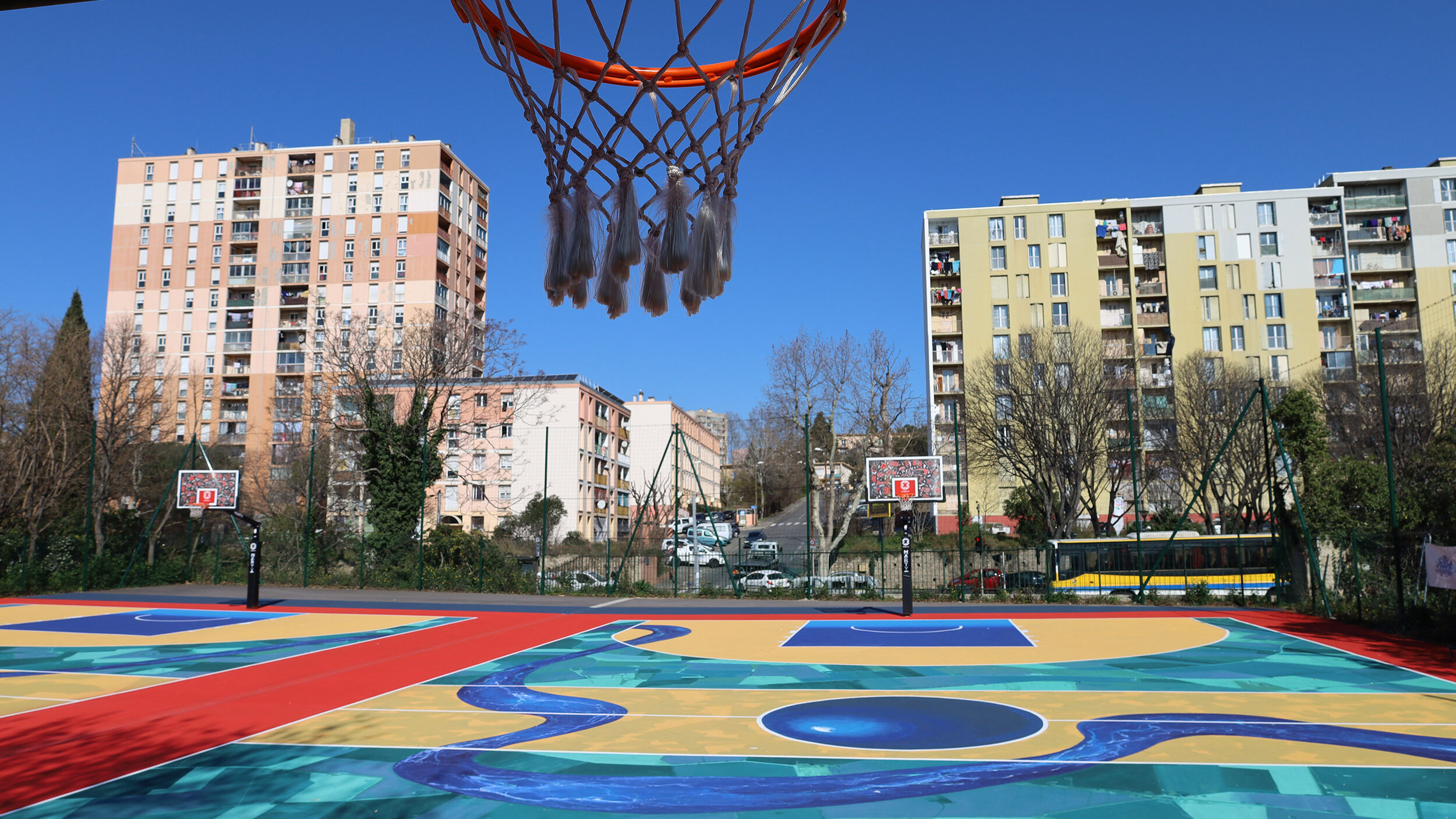À l’international, cette tendance est déjà bien installée. De New York à Lisbonne, des artistes investissent les playgrounds pour en faire des œuvres visibles depuis le ciel, pensées autant pour les joueurs que pour les habitants du quartier. Mais ce mouvement s’est aussi développé en France, notamment à Marseille, où des collectifs comme Lartmada ont fait du terrain de basket un véritable espace narratif et artistique.