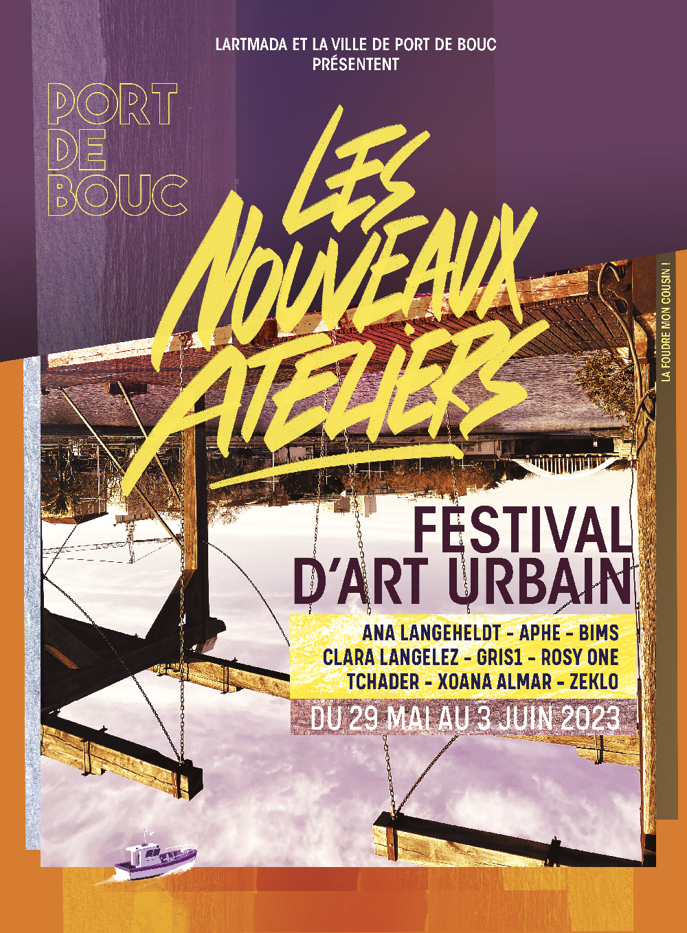 En 2023, le festival Les Nouveaux Ateliers a poursuivi son engagement en faveur de la création artistique dans l’espace public à Port-de-Bouc, en accueillant des artistes invités à dialoguer avec le territoire et ses usages.